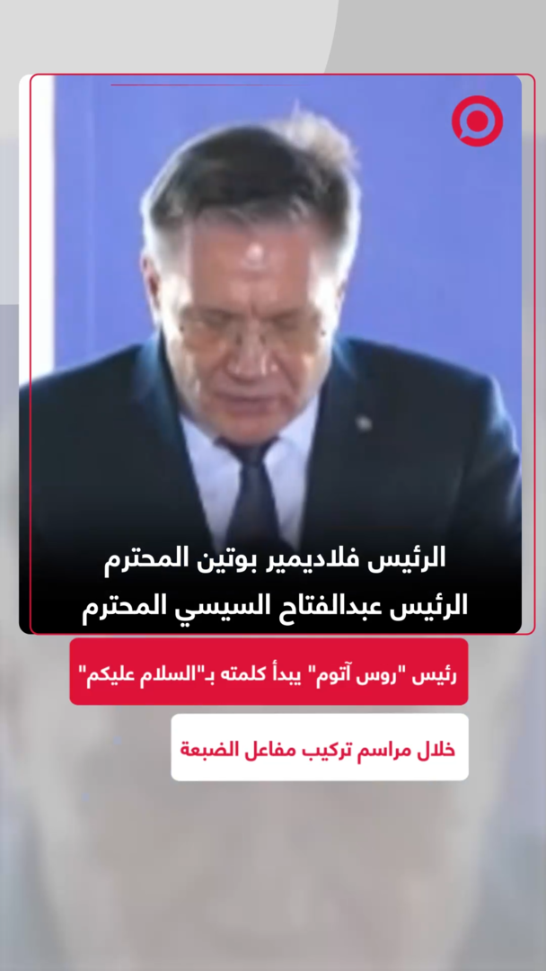 رئيس "روس آتوم" يبدأ كلمته بـ"السلام عليكم" خلال مراسم تركيب مفاعل الضبعة