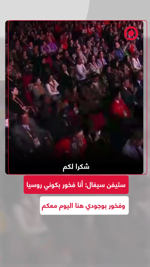 "أنا فخور بكوني روسيًا، وفخور بوجودي هنا اليوم معكم".. الممثل الشهير ستيفن سيغال خلال كلمة له، في منتدى "نحن معا" المقام في العاصمة الروسية موسكو.