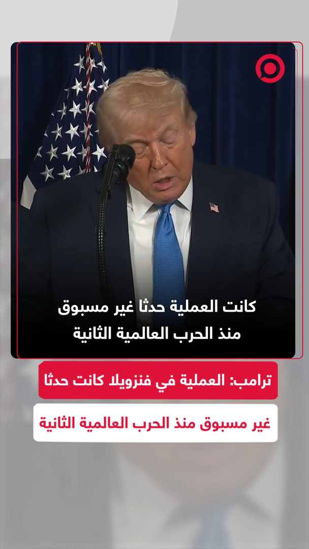 الرئيس الأمريكي دونالد ترامب يقول إن العملية الأمريكية في فنزويلا كانت حدثا غير مسبوق منذ الحرب العالمية الثانية واستهدفت حسب ما وصف تقديم الرئيس الفنزويلي نيكولاس مادورو إلى العدالة #الولايات_المتحدة #مادورو #فنزويلا #فيديو #ريل
