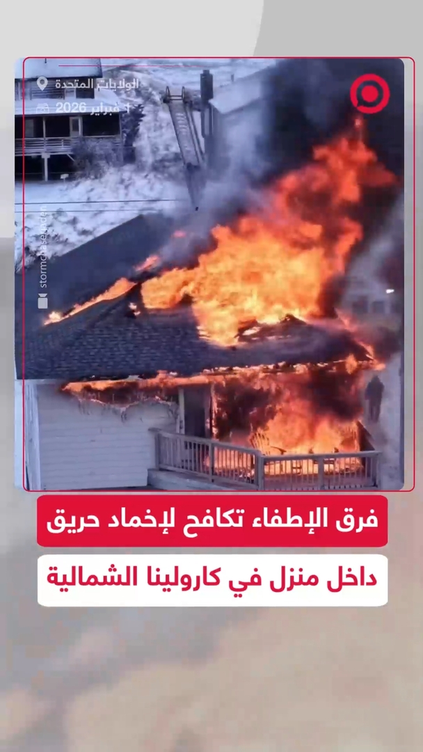 فرق الإطفاء تكافح لإخماد حريق بمنزل في ولاية كارولينا الشمالية الأمريكية