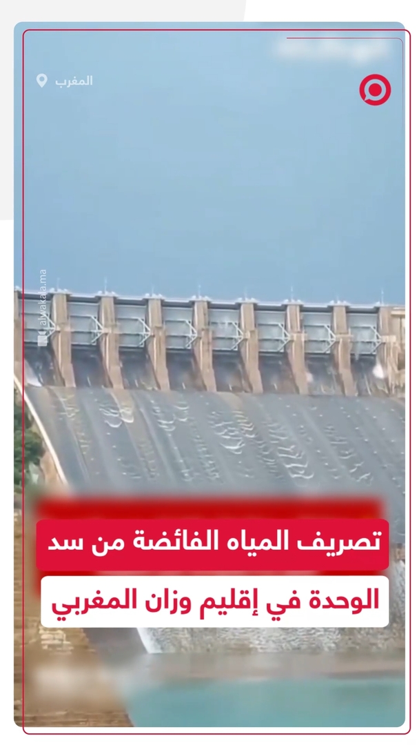 لحظة تصريف المياه الفائضة داخل سد الوحدة في إقليم وزان المغربي