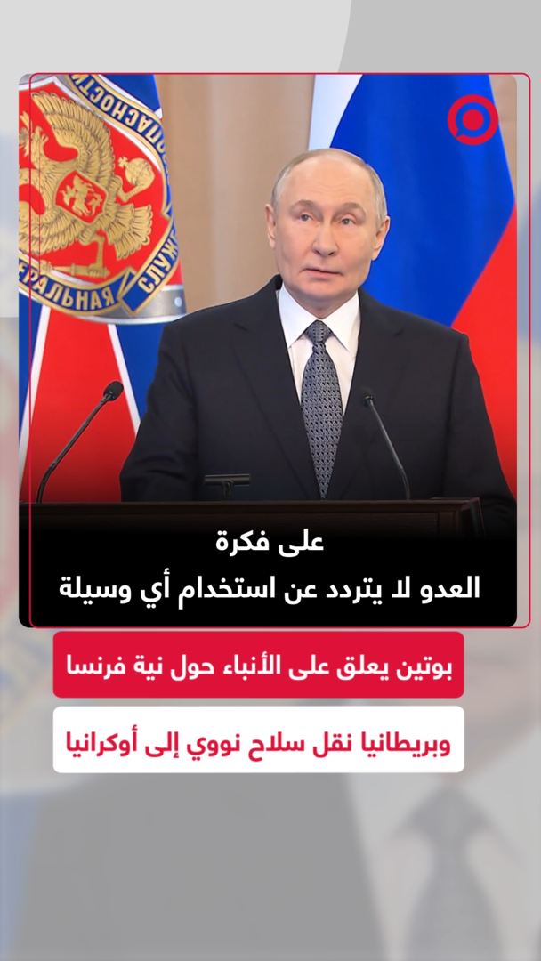 الرئيس الروسي فلاديمير بوتين يعلق على تقرير الاستخبارات الخارجية الروسية حول نية فرنسا وبريطانيا نقل سلاح نووي إلى أوكرانيا، مؤكدا أن العدو لا يتردد عن استخدام أي وسيلة في هذا النزاع.