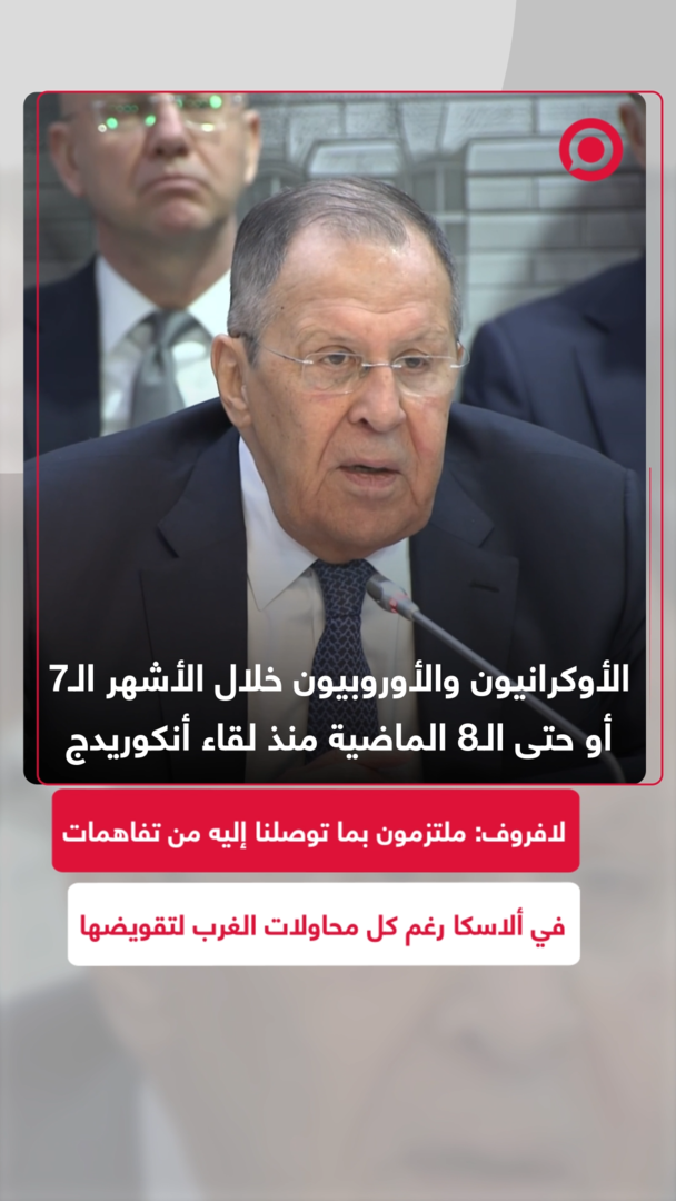 وزير الخارجية الروسي سيرغي لافروف يؤكد أن روسيا ملتزمة تماما بالتفاهمات التي تم التوصل إليها في ألاسكا مع الولايات المتحدة، مشيرا إلى أن الأوكرانيين والأوروبيبن يبذلون قصارى جهدهم لتقويض هذه التفاهمات.