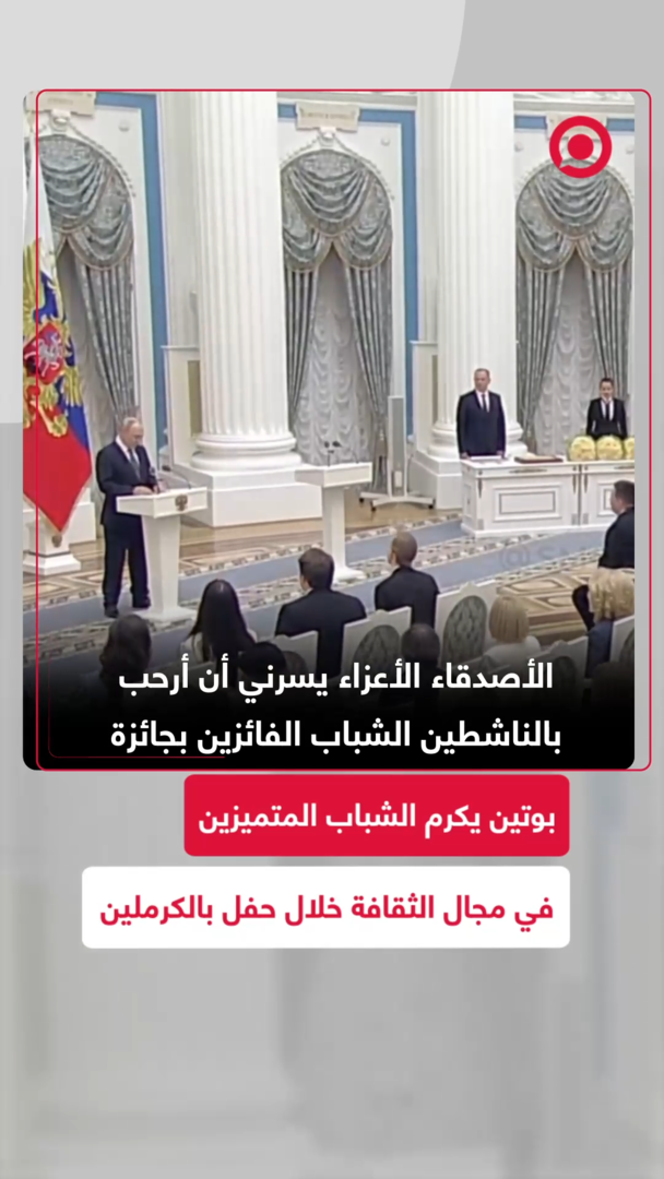 الرئيس الروسي فلاديمير بوتين يقوم بتسليم جوائز للشباب المتميزين في مجالات الثقافة والفنون خلال حفل رسمي في الكرملين. #روسيا #بوتين #ثقافة #شباب #جوائز