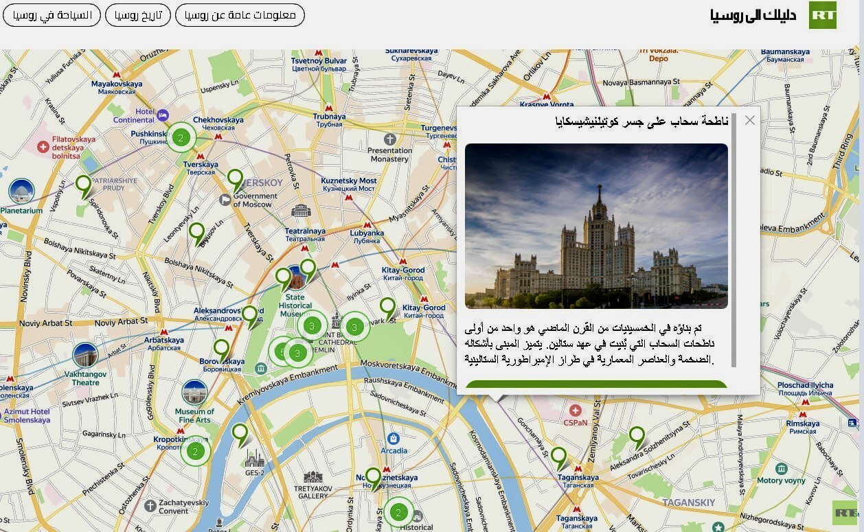 من المقرر أن تطلق في العاصمة الروسية موسكو خريطة تفاعلية إلكترونية شاملة لتلبية احتياجات السياح العرب الذين تزداد أعدادهم على الدوام، وذلك بهدف جعل زيارتهم للعاصمة أكثر يسرا وراحة.