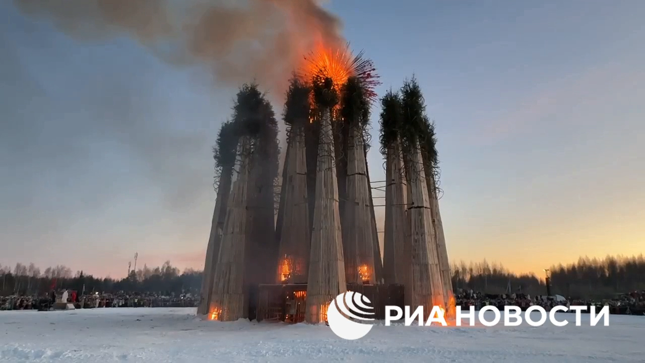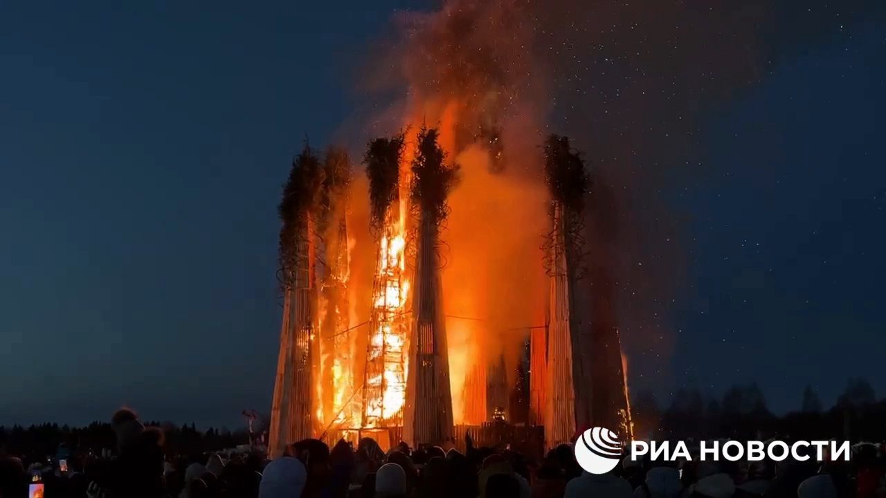 أضاء حريق هائل سماء منتزه "نيكولا-لينيفيتس" في مقاطعة كالوغا الروسية، مع إحراق مجسم فني ضخم على شكل قلب بارتفاع 25 مترا، في ختام مهرجان "ماسلينيتسا" التقليدي لتوديع فصل الشتاء.