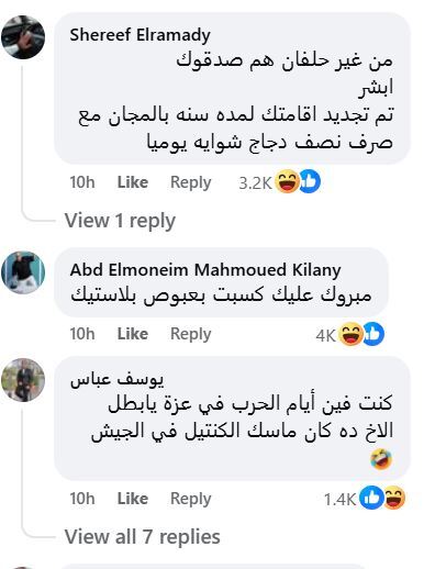 وأشار إلى أنه تحت أمر الكويت في أي لحظة، وفي اللحظة الحاسمة سيرسل أطفاله وزوجته إلى مصر وسيقوم بالقتال إلى جانب الكويت مع كافة المصريين المتواجدين على أرضها.