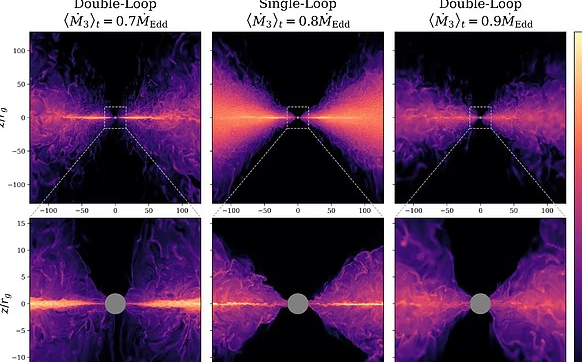 وأظهرت المحاكاة أن المادة تشكل أقراصا شديدة الاضطراب يهيمن عليها الإشعاع، وتطلق رياحا قوية وأحيانا نفثات طاقة. ومع ذلك، يظل قرص التراكم بالقرب من الثقب الأسود مستقرا نسبيا بفضل غلاف مغناطيسي يحافظ على استقرار النظام.