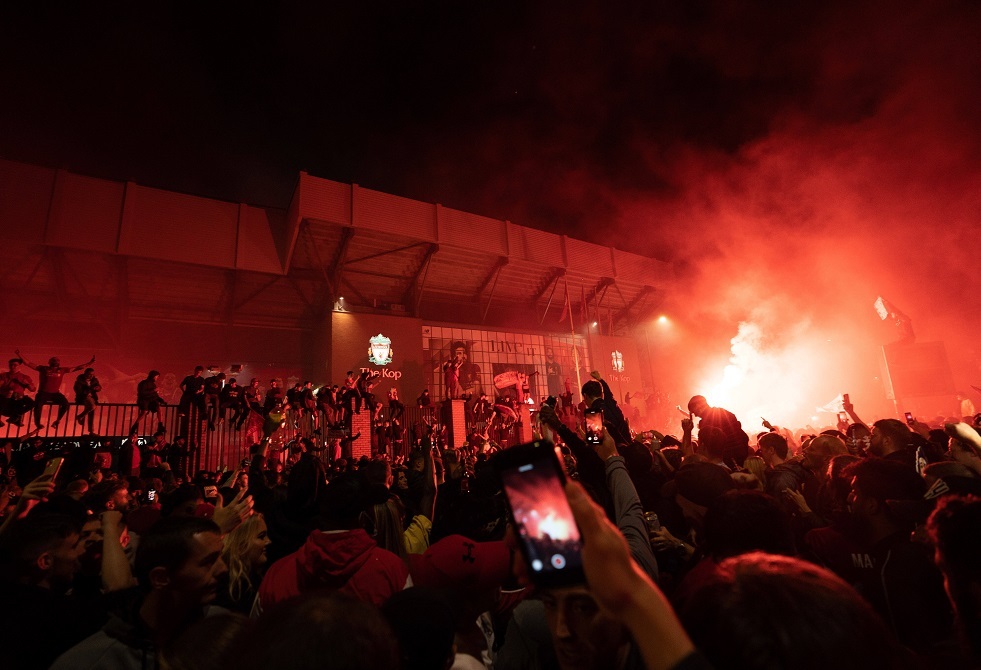 ورغم التجمعات الجماهيرية التي حدثت في مدينة ليفربول من عشاق "الريدز" آنذاك فإن الاحتفالات كانت محدودة وبضوابط معينة بسبب الإغلاق والحجر الصحي.