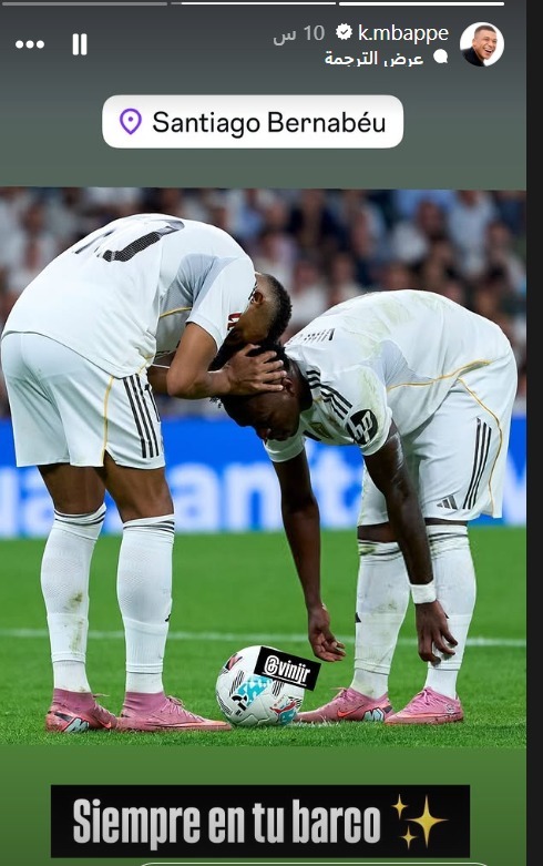 تبادل نجما ريال مديد كيليان مبابي وفينيسيوس جونيور رسائل الدعم عبر "إنستغرام" بعد فوز ريال مدريد على فياريال أمس السبت ضمن الجولة الثامنة من الدوري الإسباني.