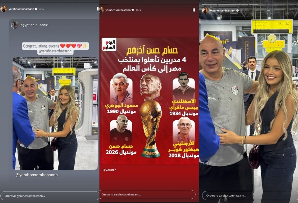 ونشرت يارا، ابنة حسام حسن، صورا عبر حسابها على موقع "إنستغرام"، وثقت فيه وصول والدها بعد إنجازه التاريخي.