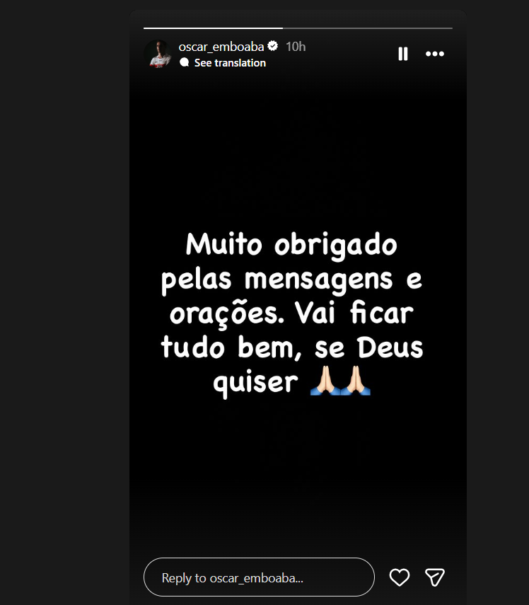 وبعد ذلك بوقت قصير، تقدم أوسكار بالشكر للجماهير على دعمها له، حيث كتب لاعب خط الوسط على حسابه الشخصي في تطبيق "إنستغرام": "شكرا جزيلا على الرسائل والدعوات. كل شيء سيكون على ما يرام".
