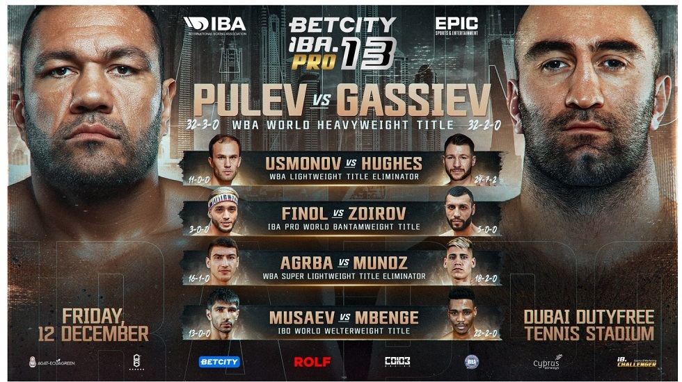 وتتصدر المواجهة على اللقب العالمي للوزن الثقيل لرابطة الملاكمة العالمية WBA، التي تجمع بين البلغاري كوبرات بوليف والروسي مراد غاسييف، وذلك ضمن مجموعة من النزالات المتكافئة وعالية الجودة.
