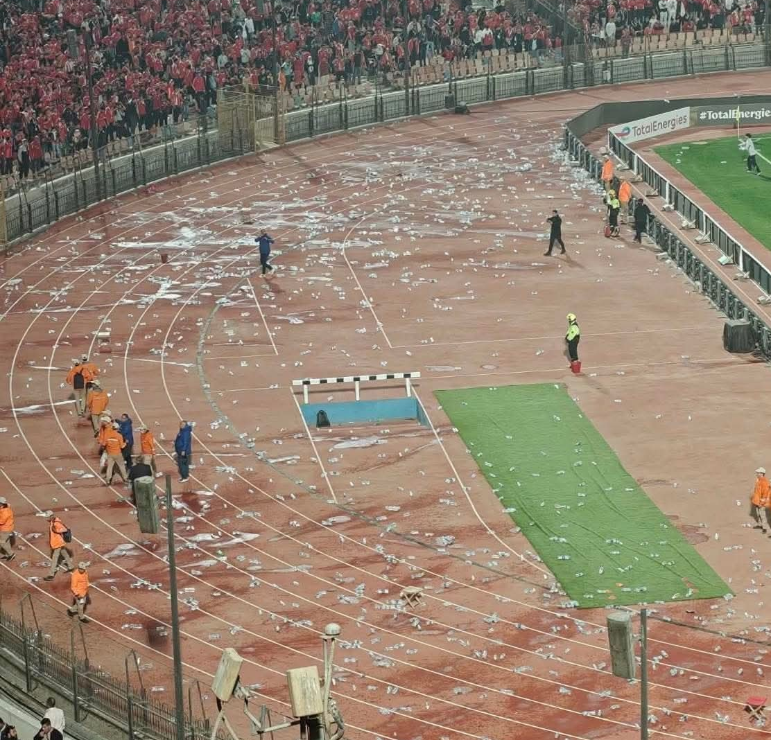 وأظهرت الكاميرات إلقاء بعض جماهير الأهلي قارورات على الملعب أثناء مغادرة لاعبي الجيش الملكي عقب نهاية المباراة.