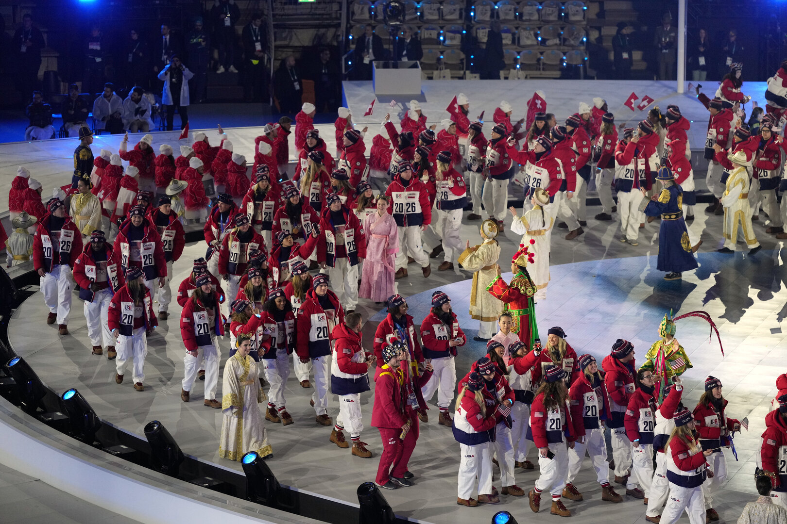 وشهد الحفل موكبا مميزا للرياضيين المشاركين، حيث دخلوا الملعب دفعة واحدة في مشهد يعكس روح الوحدة الأولمبية، بعيدا عن التقسيم التقليدي حسب الجنسيات، في رسالة تؤكد أن الرياضة جامعة للشعوب فوق كل الخلافات.