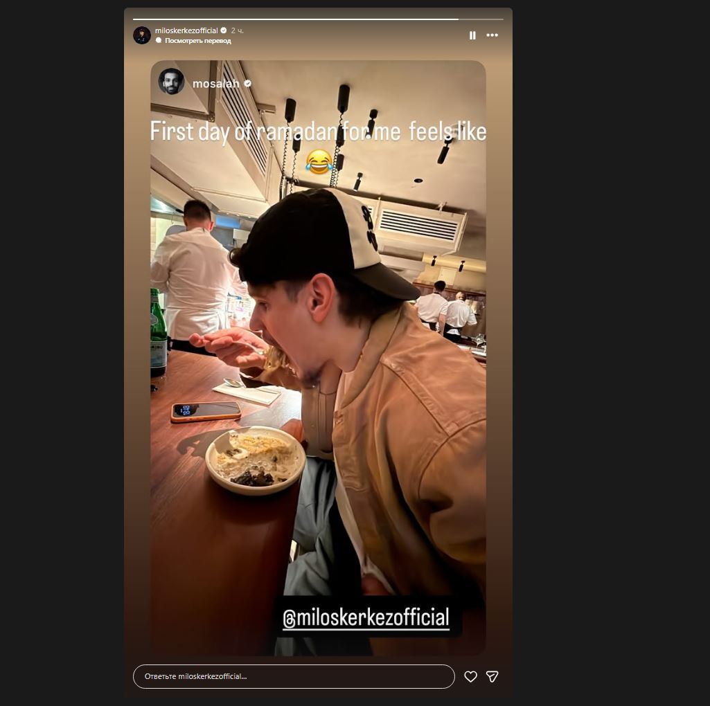 مازح النجم المصري محمد صلاح زميله في نادي ليفربول الإنجليزي لكرة القدم، الهنغاري ميلوس كيركيز، يوم الاثنين، بنشر صورة له عبر خاصية "ستوري" على منصة "إنستغرام".