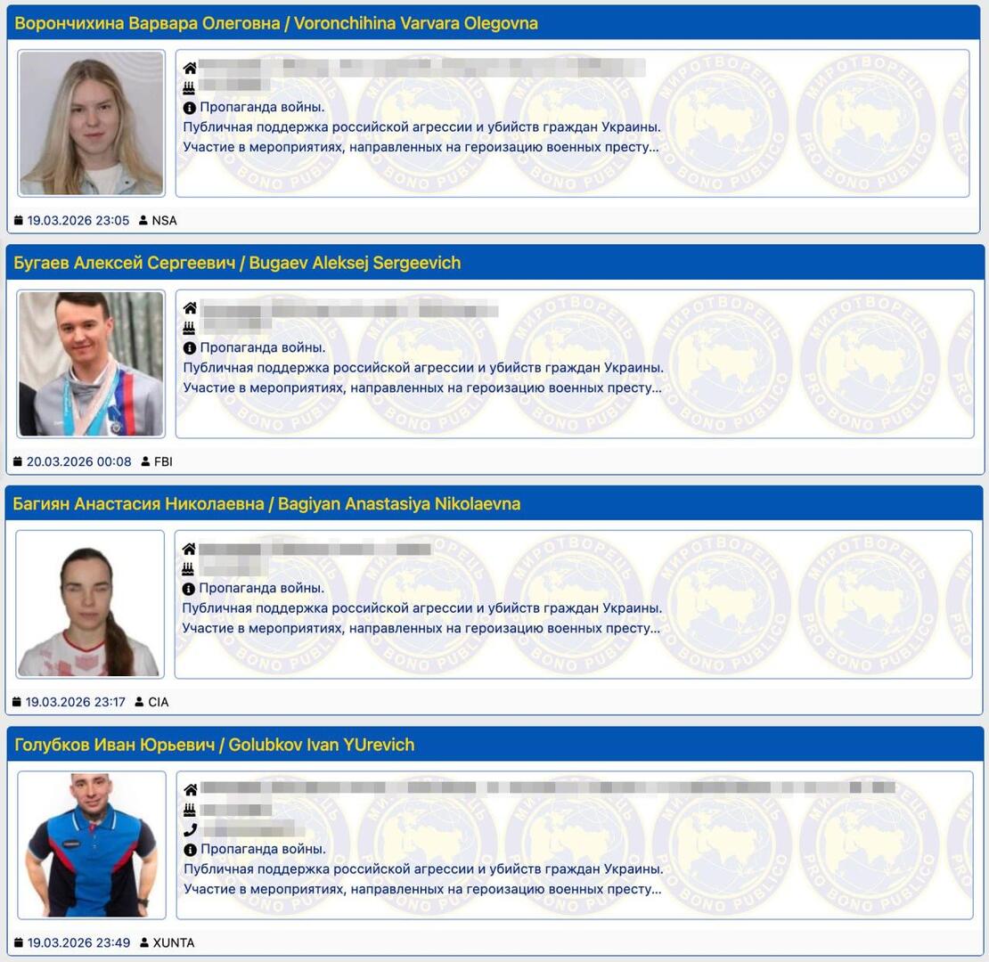 وبحسب ما ورد، وجهت للرياضيين اتهامات تتعلق بدعم الجيش الروسي والمساس بالسيادة الأوكرانية، وهي اتهامات يدرجها الموقع ضمن معاييره الخاصة لإدراج الأسماء في قاعدة بياناته.