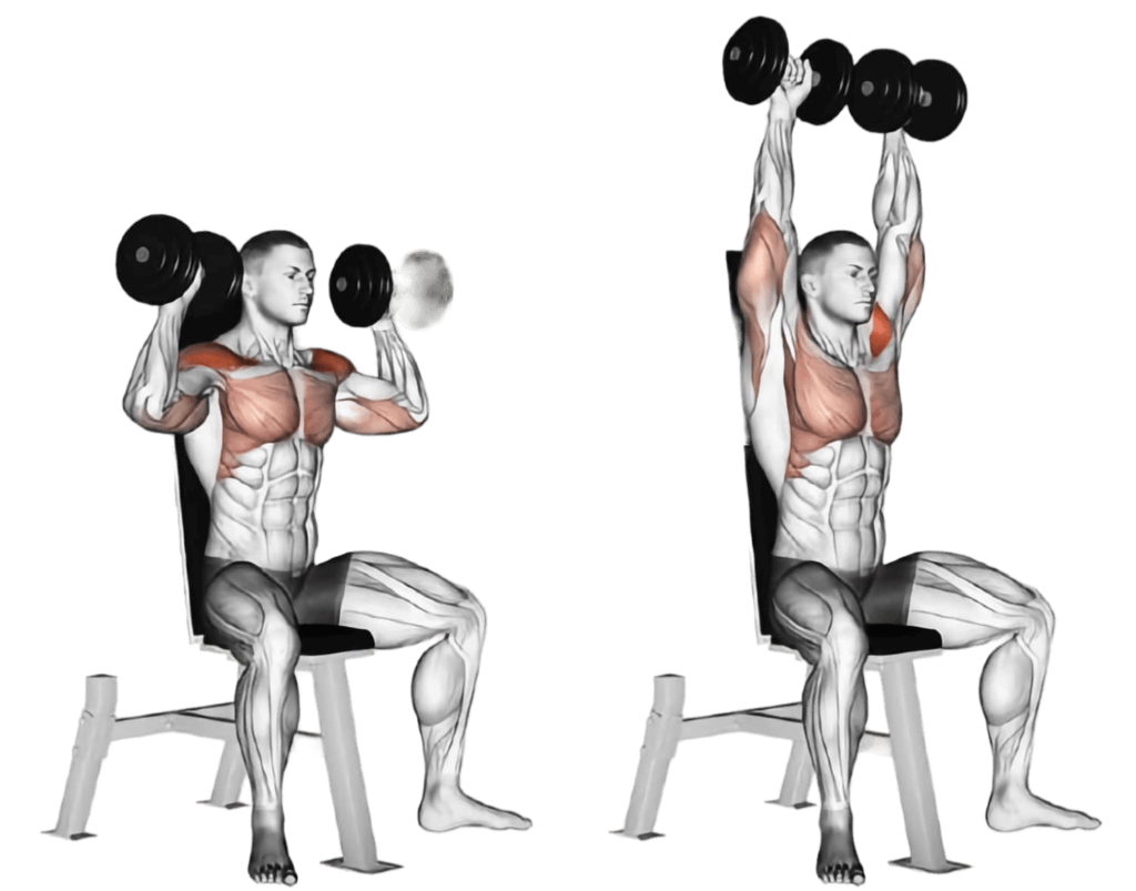 - ضغط دمبل فوق الرأس (10 تكرارات)
