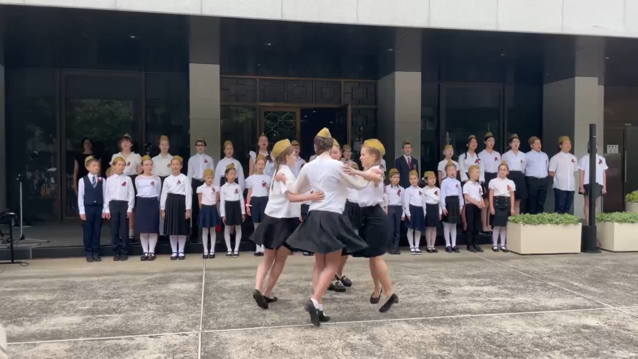 وسبق موكب "الفوج الخالد" تقليديا برنامج موسيقي قدّمته فرقة الرقص وفرقة مدرسة "بطل الاتحاد السوفيتي ريهارد زورغي" لدى السفارة الروسية في اليابان، وقام الأطفال بأداء أغنيات وطنية من زمن الحرب، منها "الطرق"، "بوليوشكو بولي"، "سمراء"، "كاتيوشا"، "يوم النصر" وغيرها من الأعمال الموسيقية، كما تم إلقاء القصائد الوطنية.