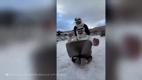 شهد جبل اللوز في منطقة تبوك السعودية يوم الجمعة تساقط ثلوج غطت الجبل وجعلته يظهر باللون الأبيض الساحر.