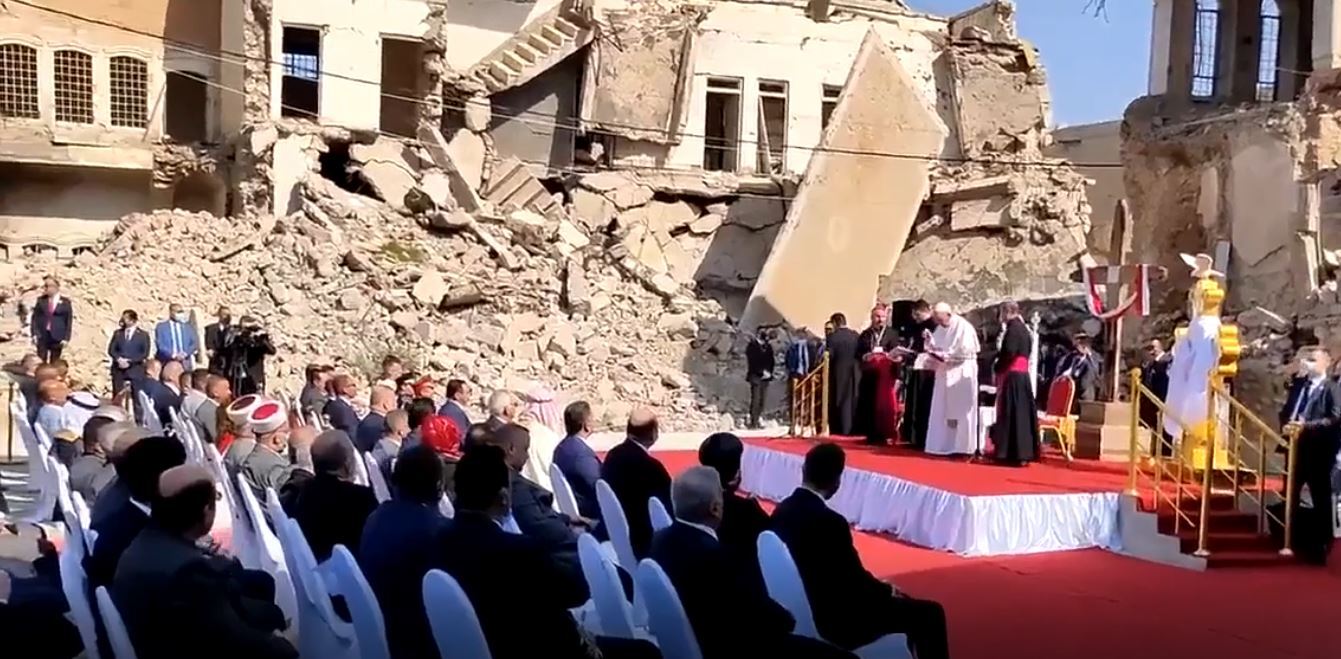 البابا يصلي لأرواح ضحايا الحرب من بين ركام الموصل