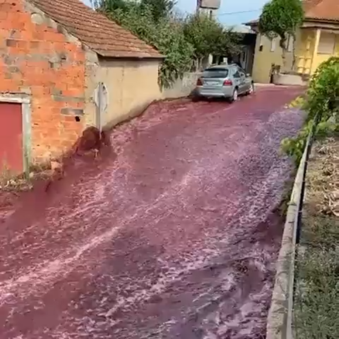 غمر النبيذ عدة شوارع في مدينة أناديا البرتغالية، بعد أن انفجر أحد خزانات النبيذ في مصنع "ديستيلاريا ليفيرا"، مما أدى إلى انسكاب آلاف اللترات من النبيذ.