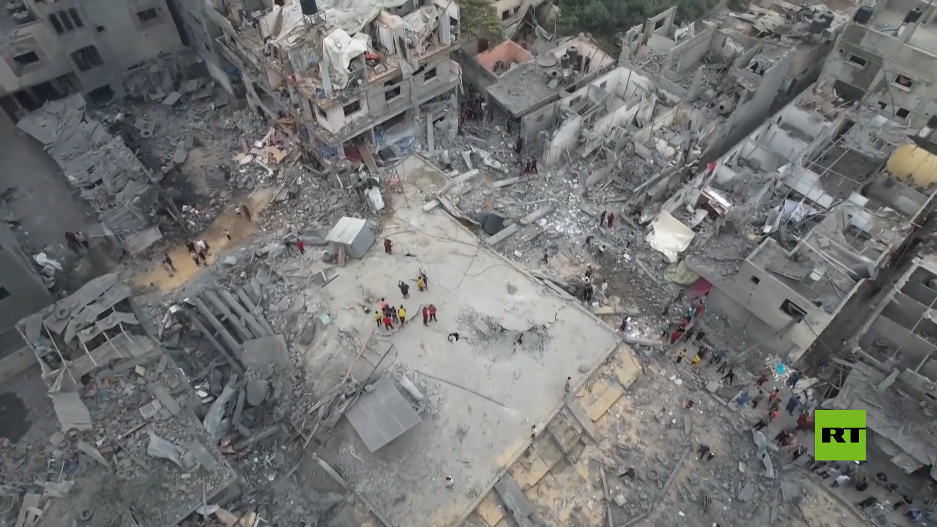 مشاهد مرعبة من الجو توثق الدمار في دير البلح بقطاع غزة