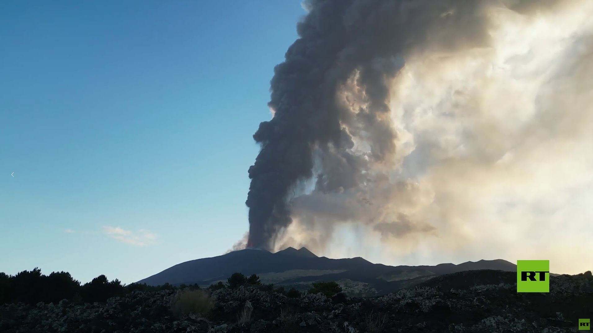 بركان إتنا في جزيرة صقلية الإيطالية يقذف حممه