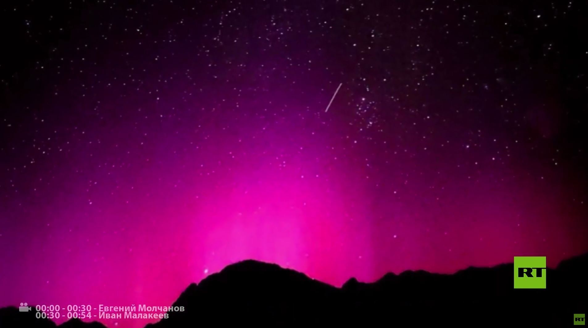 تلونت السماء بألوان زاهية وجميلة من درجات الوردي المتعددة نتيجة للشفق القطبي، ما أضفى مشهدًا ساحرًا على مدينة نوفوسيبيرسك الروسية ليل الاثنين وأثار إعجاب السكان.