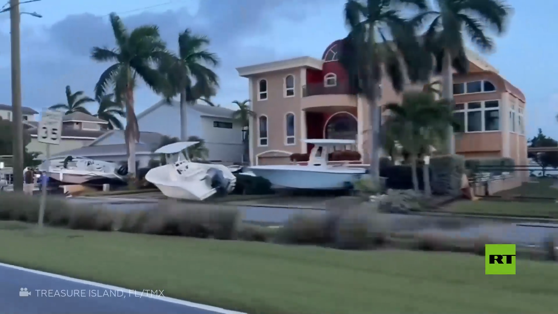 خلفت العاصفة هيلين التي ضربت جزيرة تريجر آيلاند بولاية فلوريدا الأمريكية أضرارا واسعة، حيث تكدست القوارب في الممرات والساحات الأمامية وكانت الأحياء مليئة بالحطام وأغصان الأشجار.