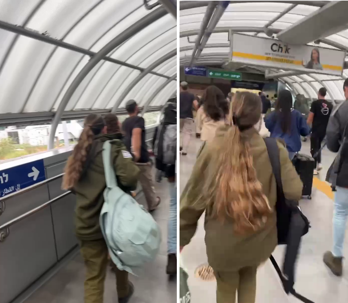 لحظة هروب الجنود والمسافرين من محطة قطارات في تل أبيب إثر هجوم صاروخي من لبنان