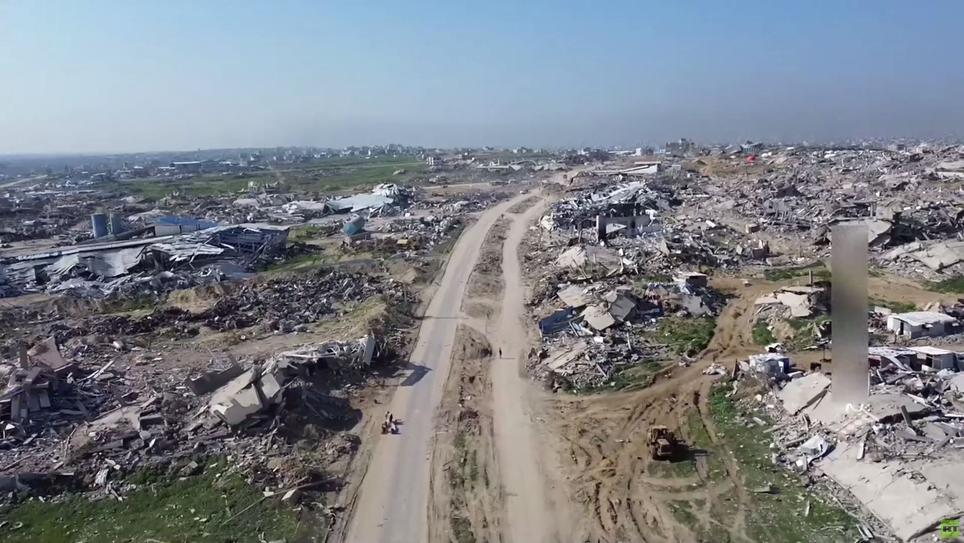 تداولت لقطات جوية توثق الدمار الذي لحق بمحيط دوار حمودة شمال قطاع غزة، نتيجة للحرب الإسرائيلية على القطاع.