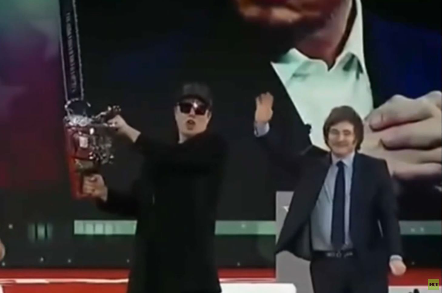 قدم الرئيس الأرجنتيني، خافيير ميلي، لإيلون ماسك منشارا ذهبيا، حيث صرخ الملياردير، دون أن يخفي عواطفه، قائلا إن هذا سلاح لمحاربة البيروقراطية.