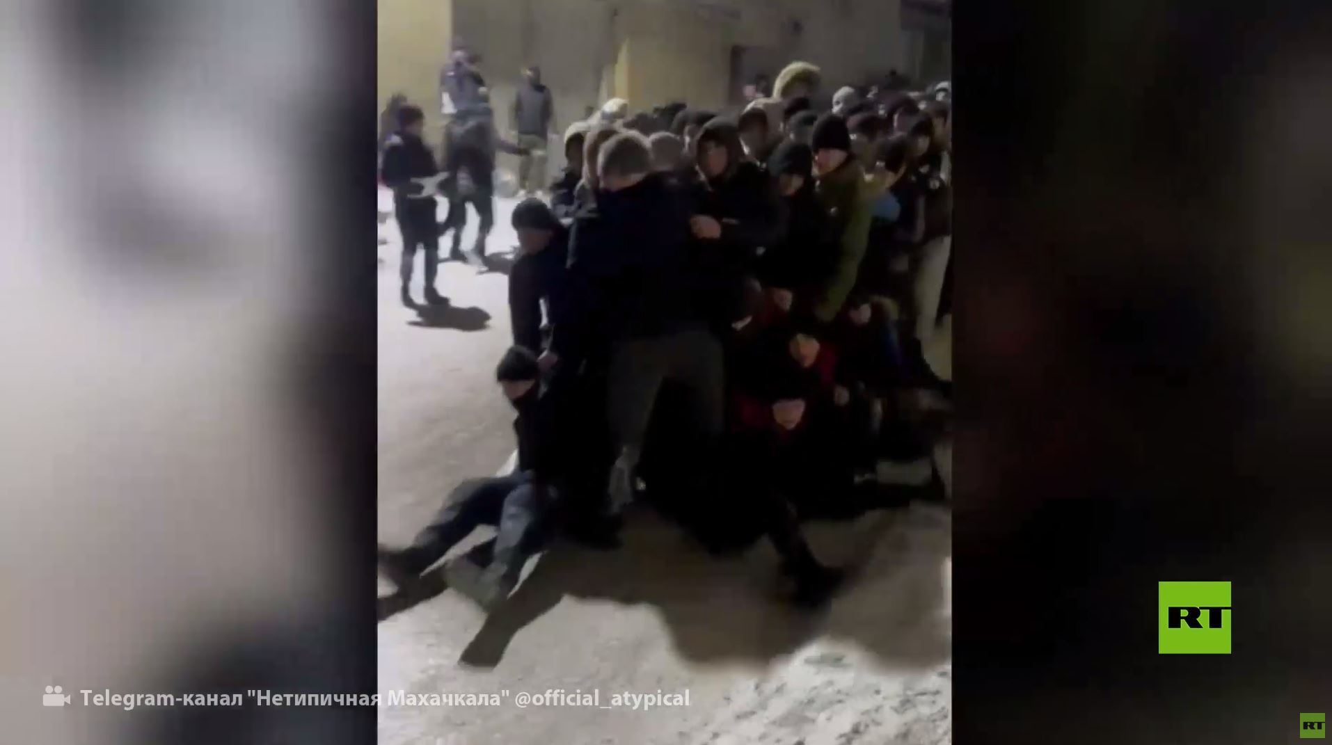 يستمتع سكان داغستان بفصل الشتاء حتى نهايته، حيث يقومون بالتدحرج جماعيا على طريق مغطى بالجليد في مدينة محج قلعة.