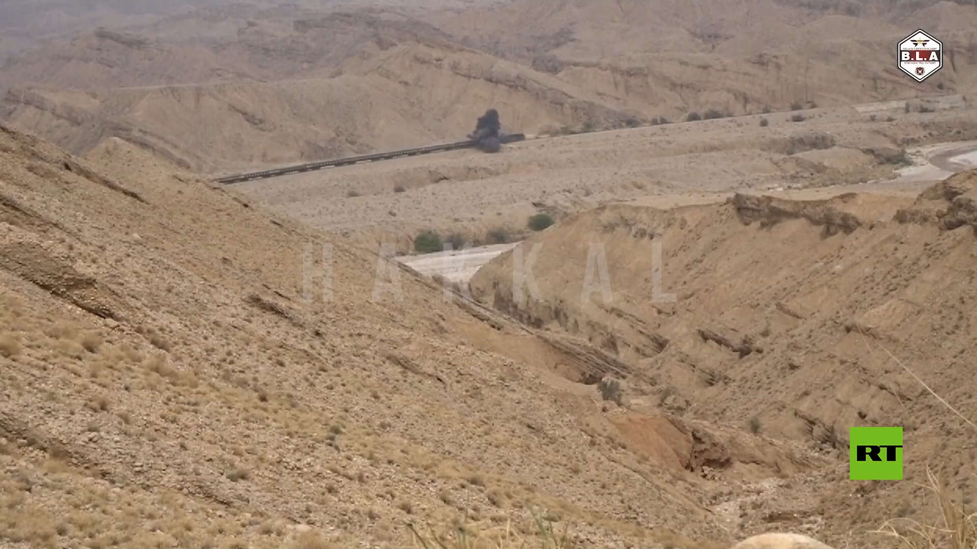 ونشر "جيش تحرير بلوشستان" من خلال جناحه الإعلامي "حقال" مقطع فيديو يُظهر انفجارا بالقرب من خط السكة الحديد ومجموعات من الأشخاص يقفون خارج القطار في منطقة جبلية.