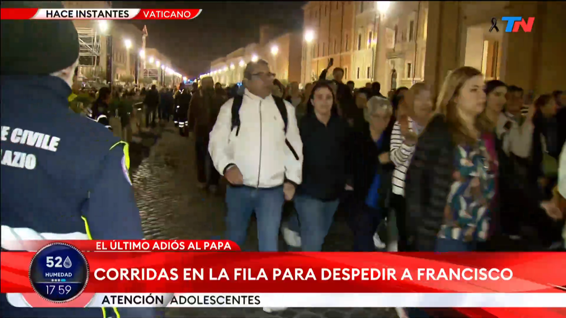 وأفات وكالة "د ب أ" أن الحشود تجاوزت الحواجز الأمنية في شارع فيا ديلا كونشيلياتسيوني، الطريق الرئيسي المؤدي إلى ساحة القديس بطرس، فيما حاول بعضهم التوجه مباشرة نحو الكاتدرائية، مما دفع قوات الأمن إلى التدخل لوقفهم.