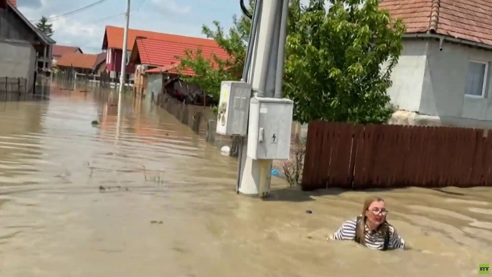 انتشر على شبكات التواصل الاجتماعي مقطع فيديو لتقرير أعدته صحفية رومانية في إحدى مناطق رومانيا، التي غمرتها الفيضانات نتيجة الأمطار الغزيرة.