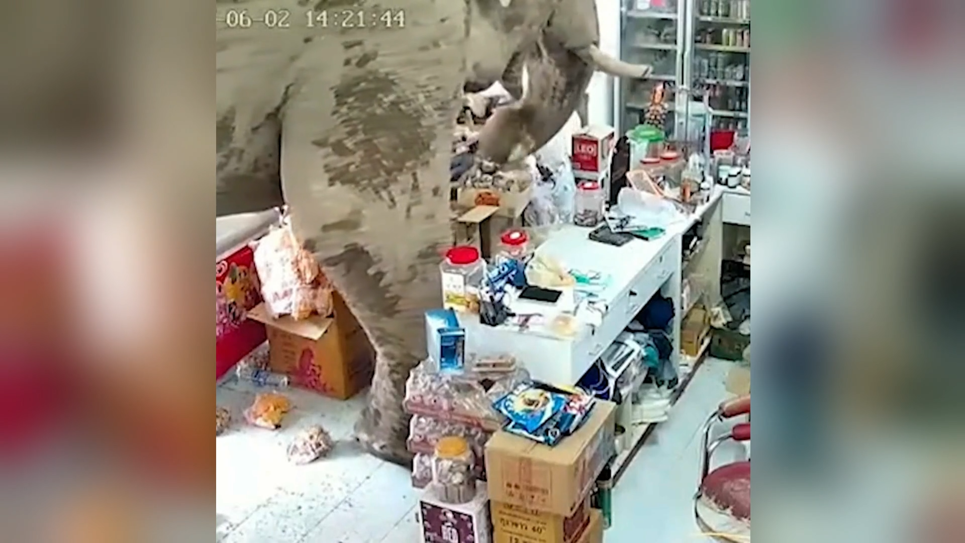 اقتحم فيل يدعى بلاي بيانج ليك متجرا صغيرا في تايلاند وأكل عدة صناديق من بسكويت الأرز قبل أن يغادره بهدوء دون أن يدفع سنتا واحدا.