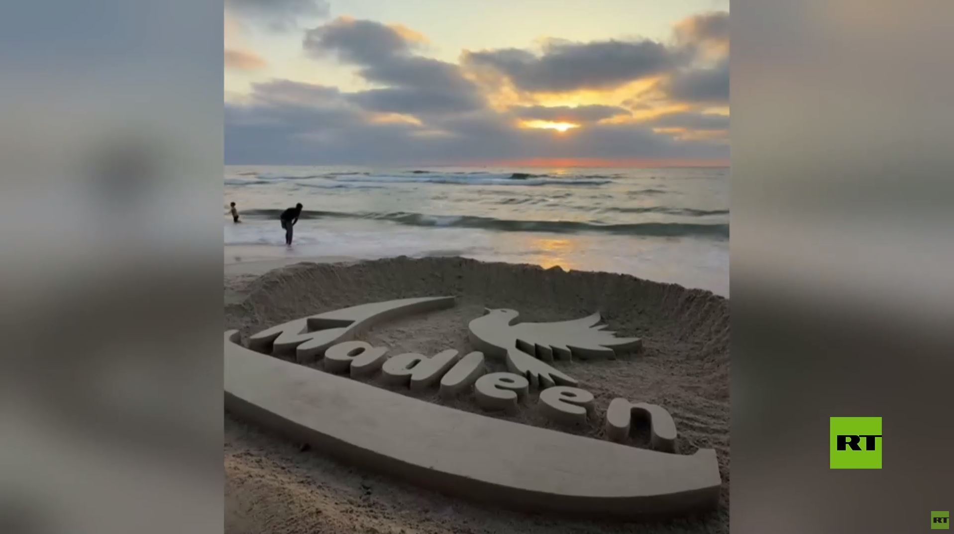 نحتوا اسمها بالرمل.. كيف عبر أهل غزة عن تضامنهم مع نشطاء "مادلين"