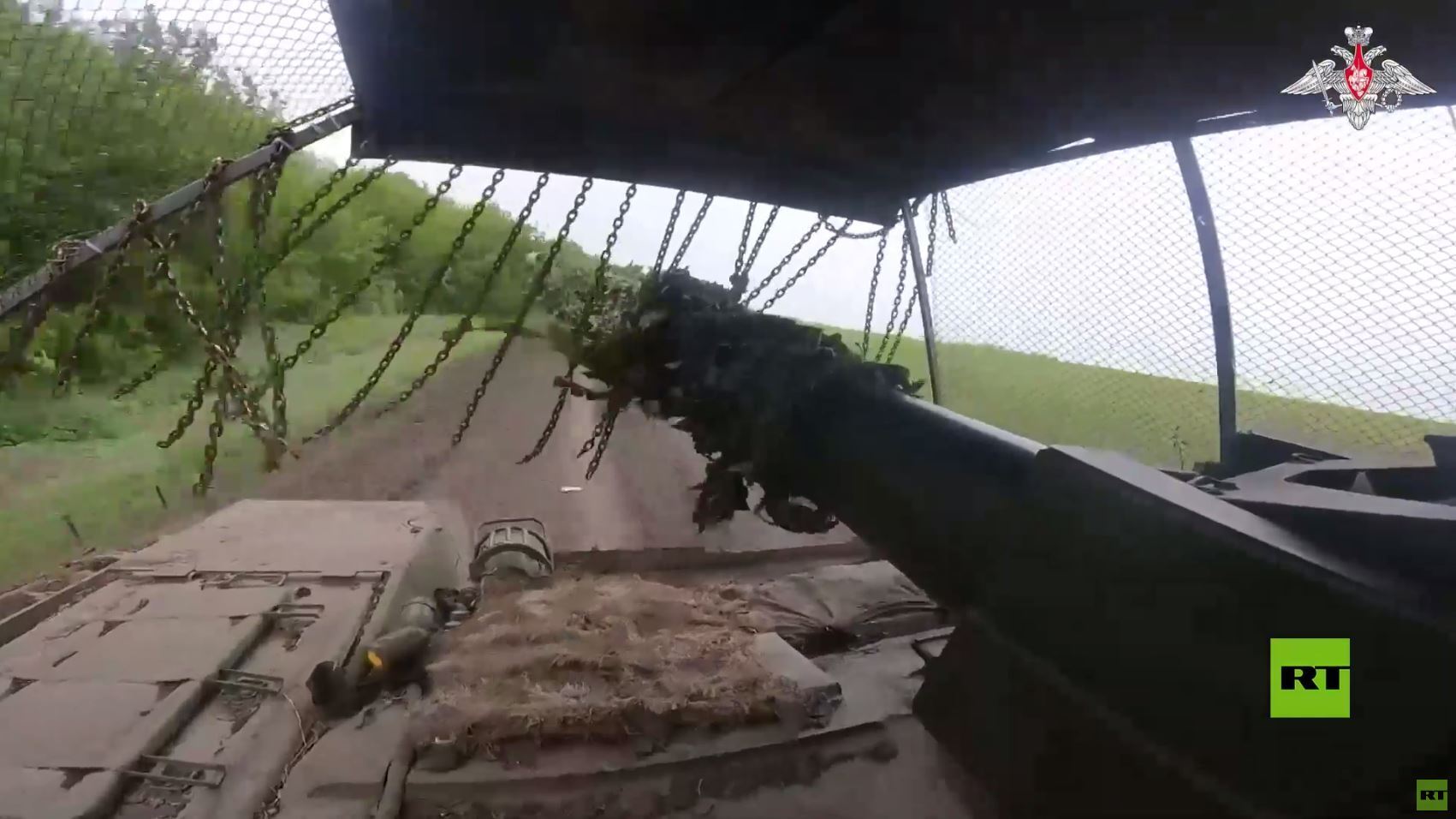 نشرت وزارة الدفاع الروسية مقطع فيديو يظهر طاقم دبابة "T-72B3M" التابعة لمجموعة قوات "الشمال" الروسية، وهو يقوم بتدمير معقل أوكراني على محور خاركوف.