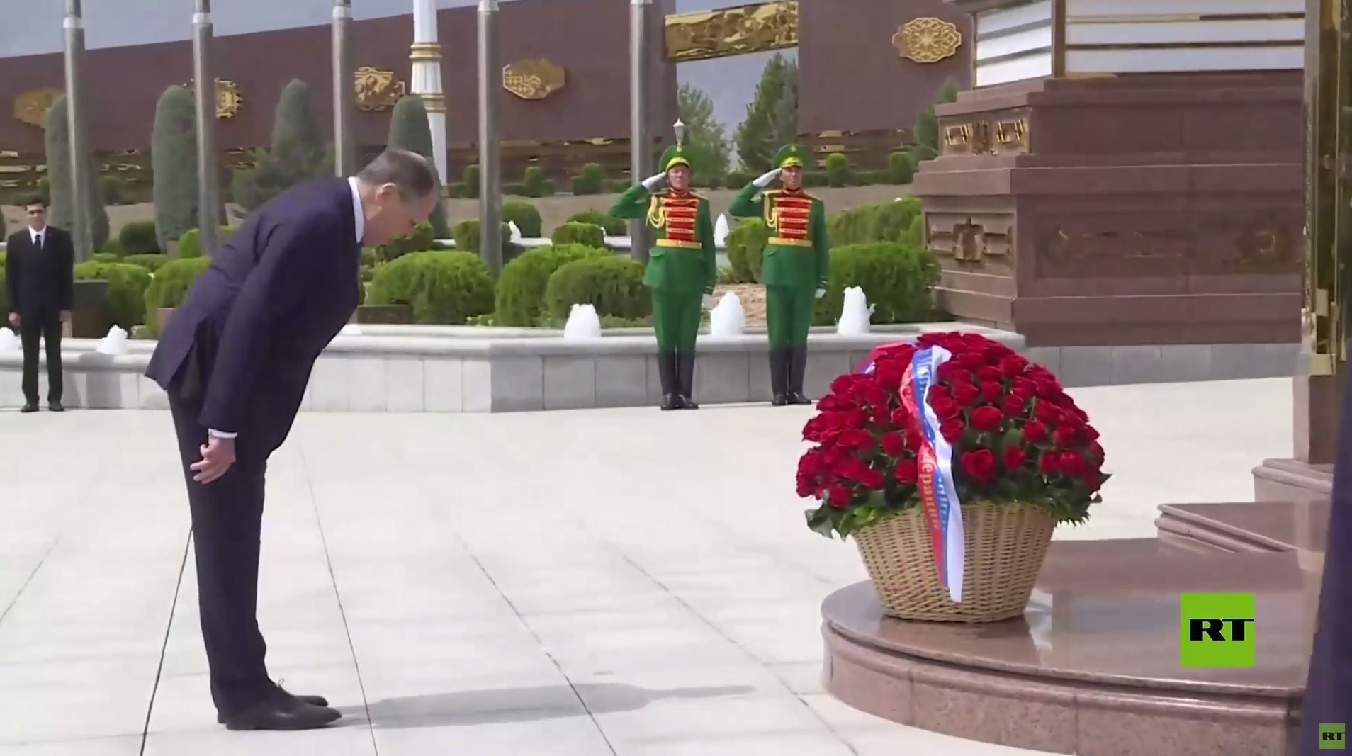 سيرغي لافروف يضع إكليلا من الزهور أمام المجمع التذكاري في عشق آباد