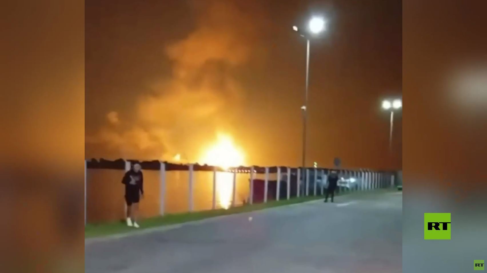 إخماد حريق على أرصفة ميناء فولنا في إقليم كراسنودار عقب هجوم بطائرة مسيرة