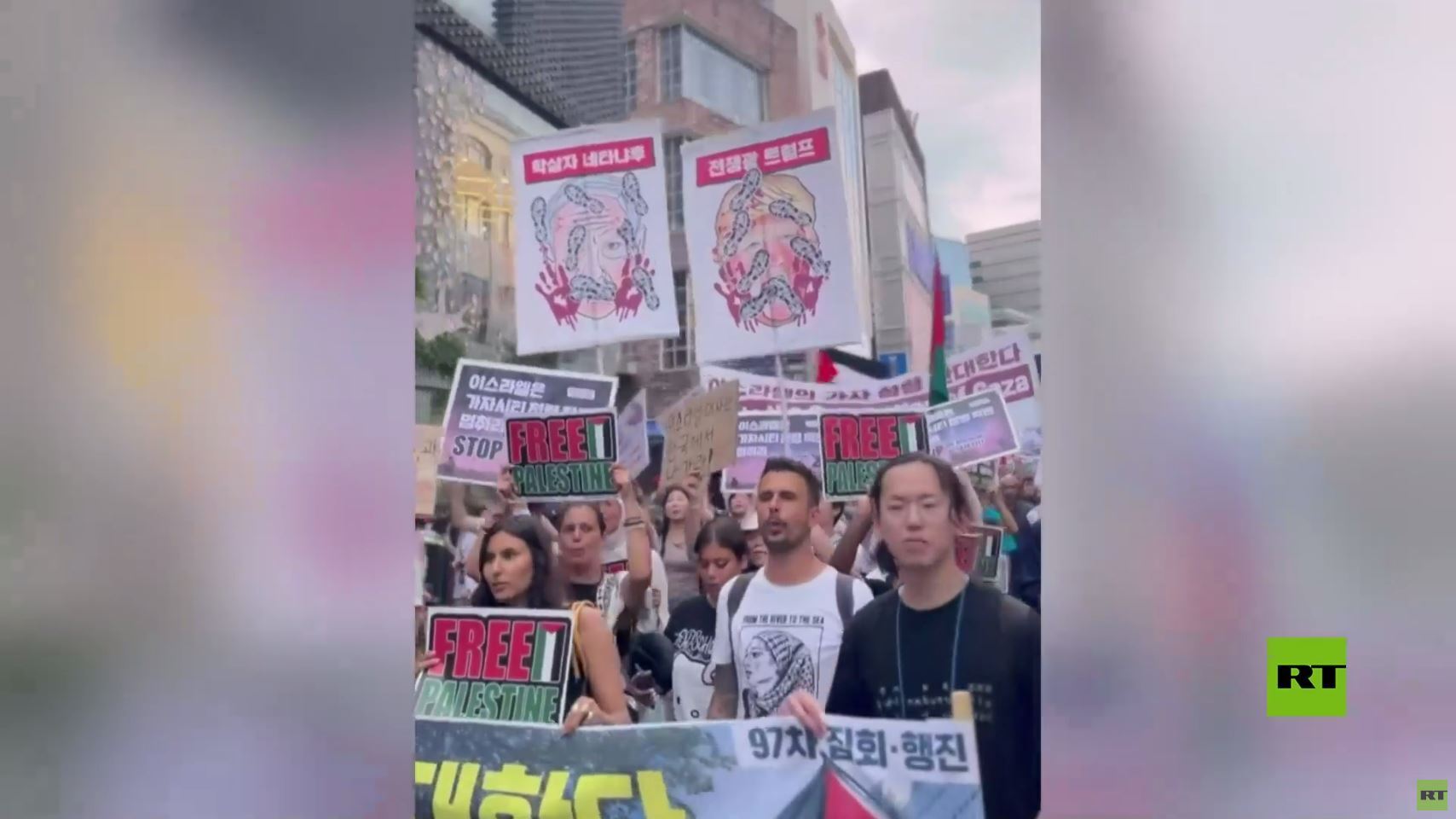 نشرت وسائل الإعلام لقطات تظهر جانبا من تظاهرة حاشدة في مدينة سيئول، عاصمة كوريا الجنوبية، دعما لفلسطين وتنديدا بالحرب والحصار المفروض على غزة.