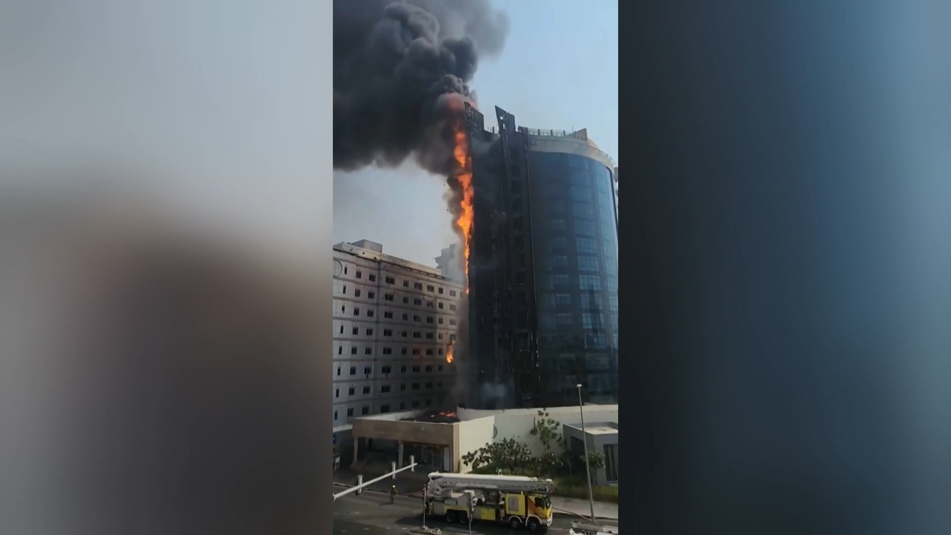 شاهد.. سلطات دبي تستخدم التكنولوجيا الحديثة للسيطرة على حريق في ناطحة سحاب