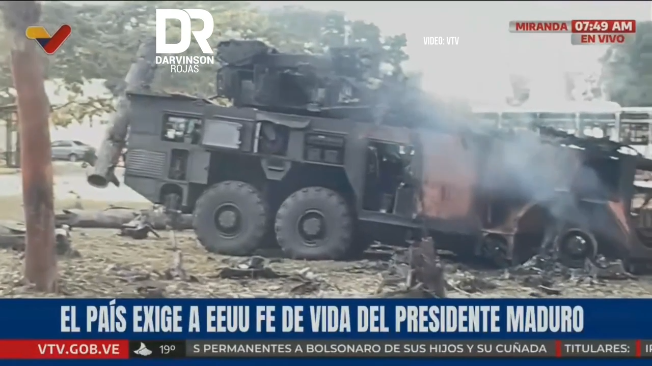 توثق لقطات الأضرار الناجمة عن الغارات الجوية الأمريكية التي شنت فجر اليوم السبت على قاعدة لا كارلوتا الجوية، الواقعة في ولاية ميراندا الفنزويلية، بالقرب من كاراكاس.