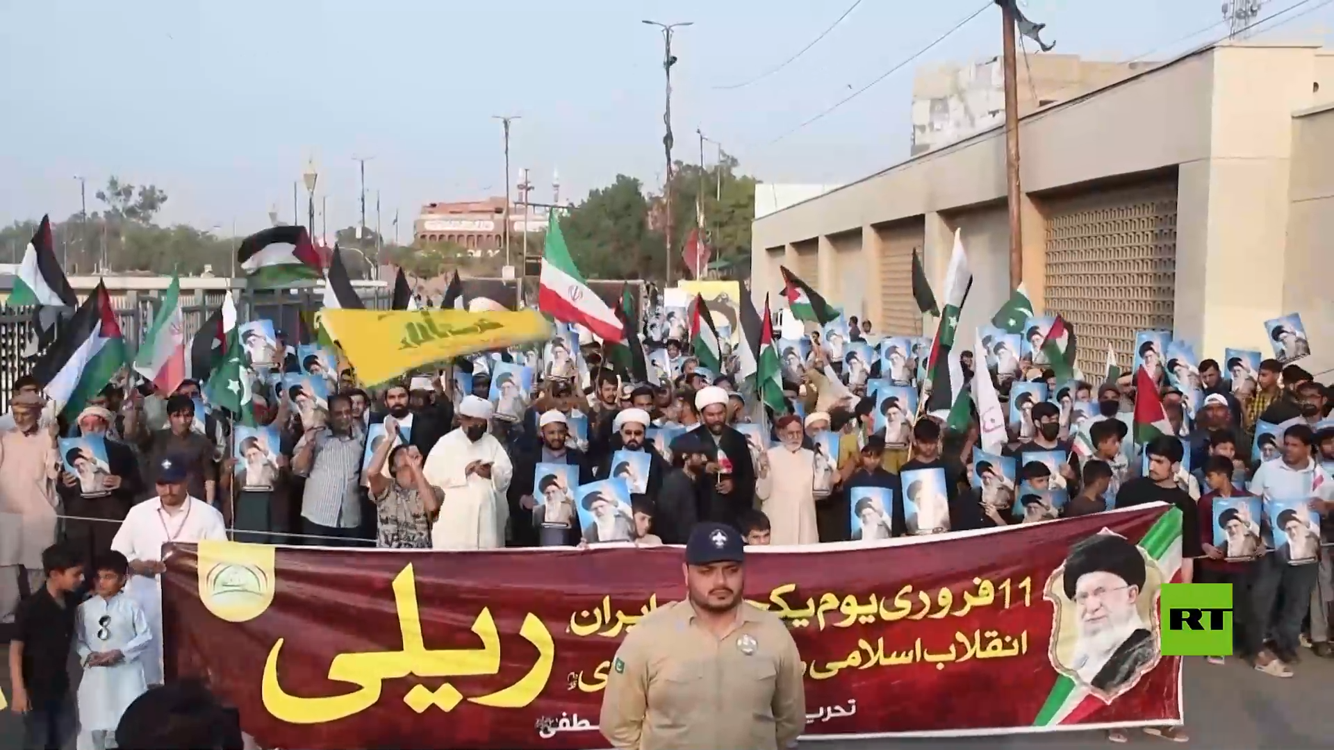 شارك مئات المسلمين الشيعة في مدينة كراتشي الباكستانية في مسيرة تضامنية مع إيران والمرشد الأعلى علي خامنئي بمناسبة الذكرى الـ47 للثورة الإسلامية الإيرانية.