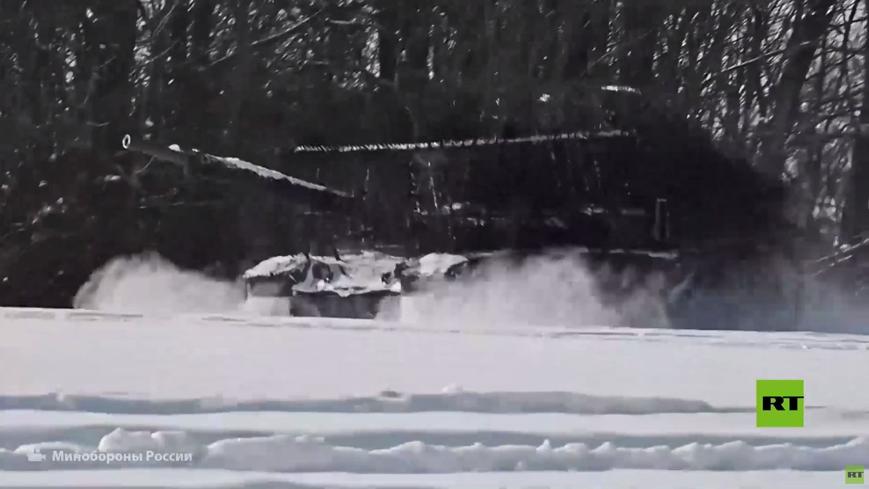 نشرت وزارة الدفاع الروسية لقطات لقيام طاقم دبابة "تي-80 بي في إم" التابعة لمجموعة قوات "الشمال" الروسية بتدمير مواقع محصنة تابعة للجيش الأوكراني في مقاطعة سومي.
