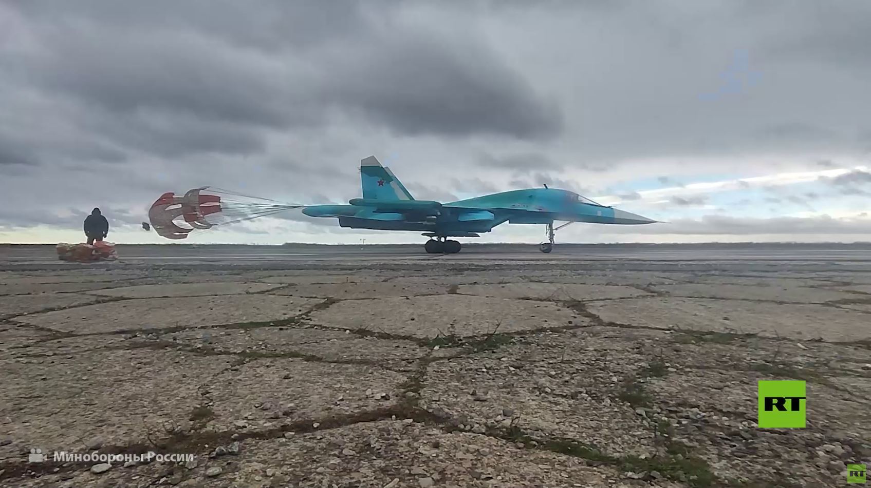 تظهر لقطات وزارة الدفاع الروسية تحليقات قتالية لمقاتلات سو-34 تنفذ مهماتها في جميع الأحوال الجوية في منطقة العملية العسكرية الخاصة في أوكرانيا.