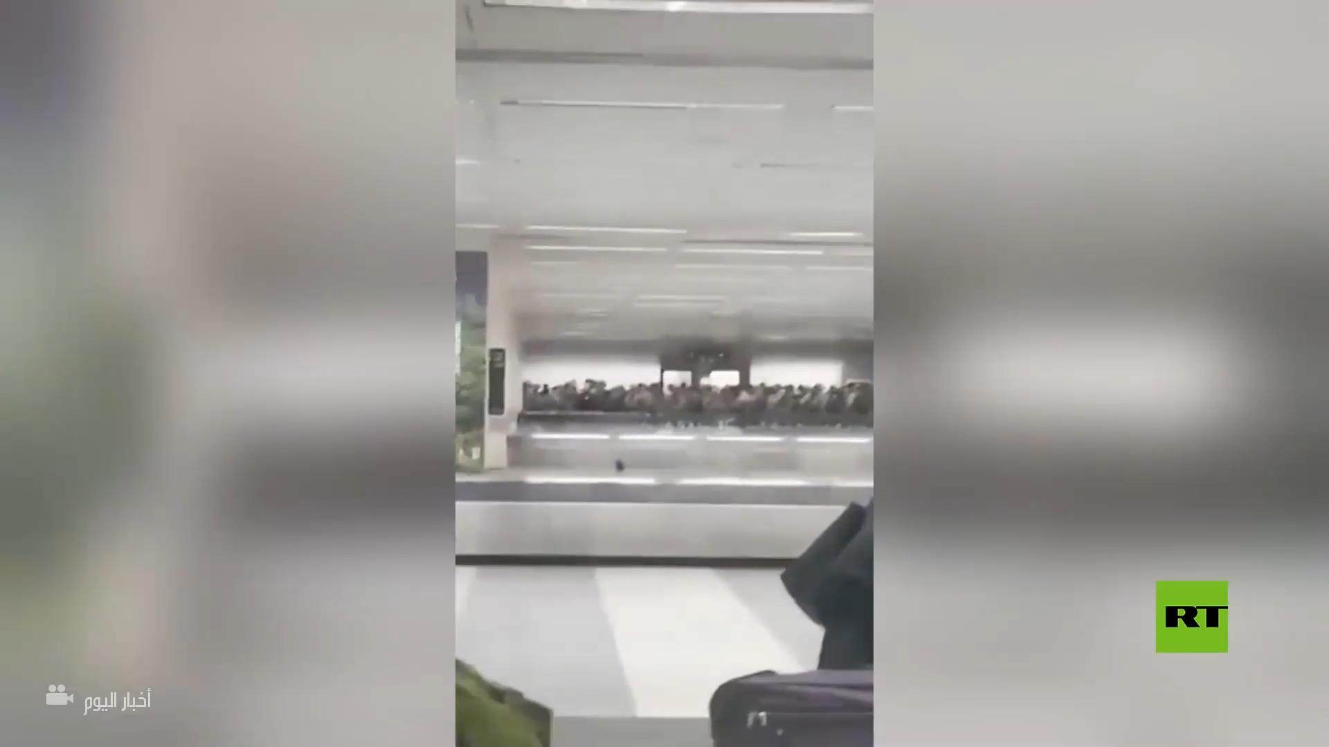 أظهرت لقطات مجموعة من الأشخاص يرتدون زيا عسكريا وهم يقفون داخل مطار رفيق الحريري الدولي في العاصمة اللبنانية بيروت.