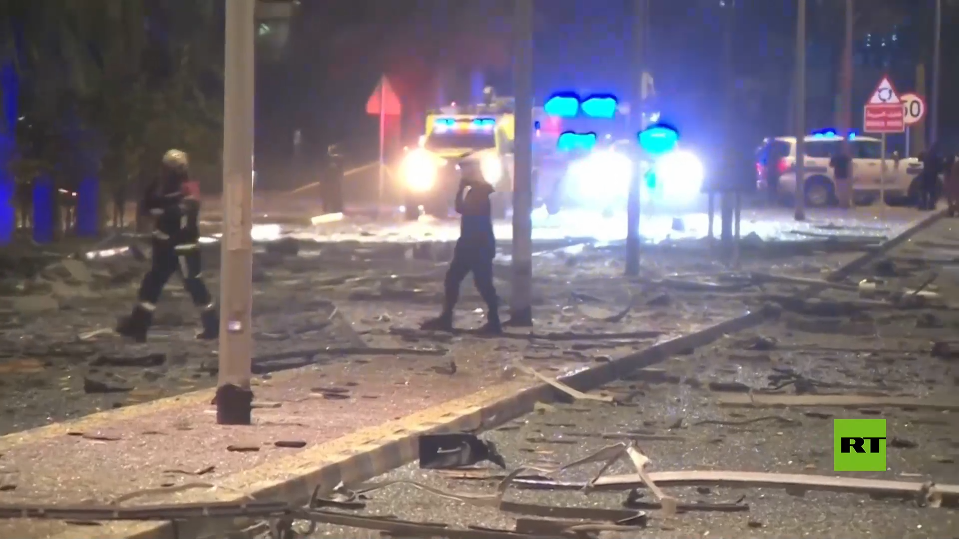 نشر التلفزيون البحريني لقطات لعواقب استهداف إيراني لمبنى سكني في العاصمة البحرينية أمس الاثنين توثق حطاما متناثرا في شوارع ونشر فرق الإطفاء والإسعاف والشرطة في موقع الحادث.